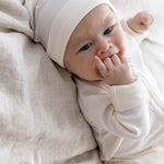 Get ahead of the style game with our Cream Double Knot Bamboo Hat! This adorable hatnot only adds a touch of fashion to your little one's look, but also offers ultimate comfort. Made with soft bamboo fabric, it's designed to stay snug and stretch as they grow. Time to knot around town!