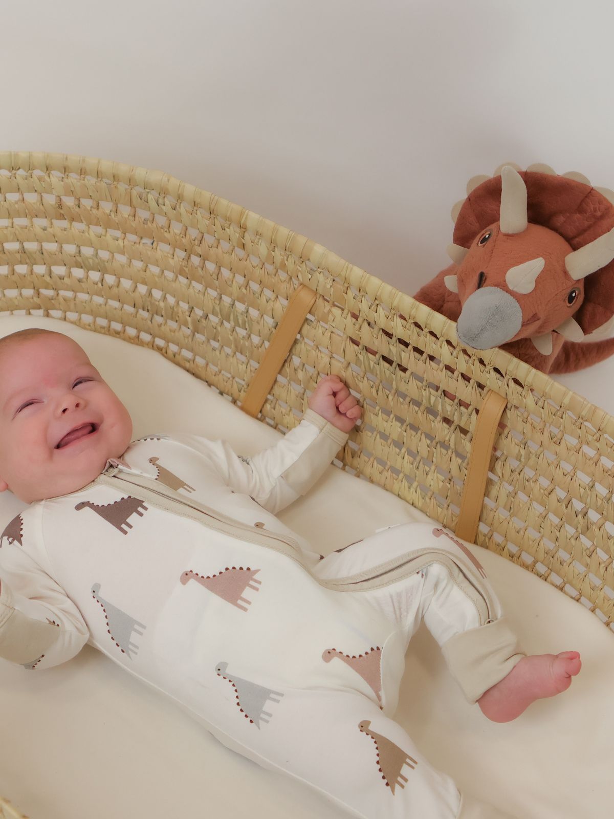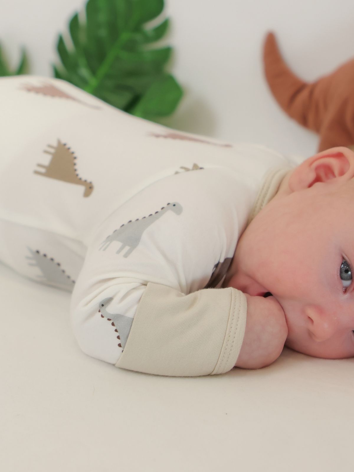 Stylish and cute, this Zippy bamboo onesie is the perfect sleepsuit for your little one. It's made of soft and comfortable bamboo, with sweet dinosaur prints in earthy tones. Perfect for mixing and matching with ribbed designs- unleash the dinosaur craze!