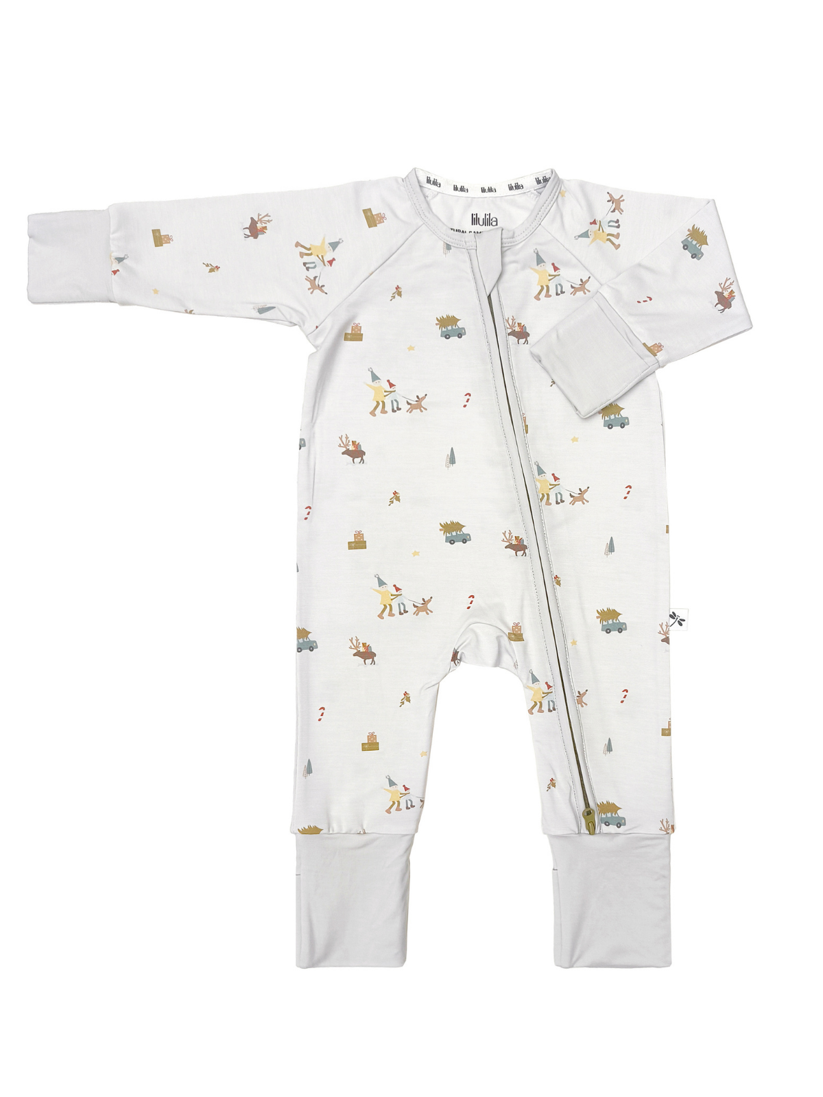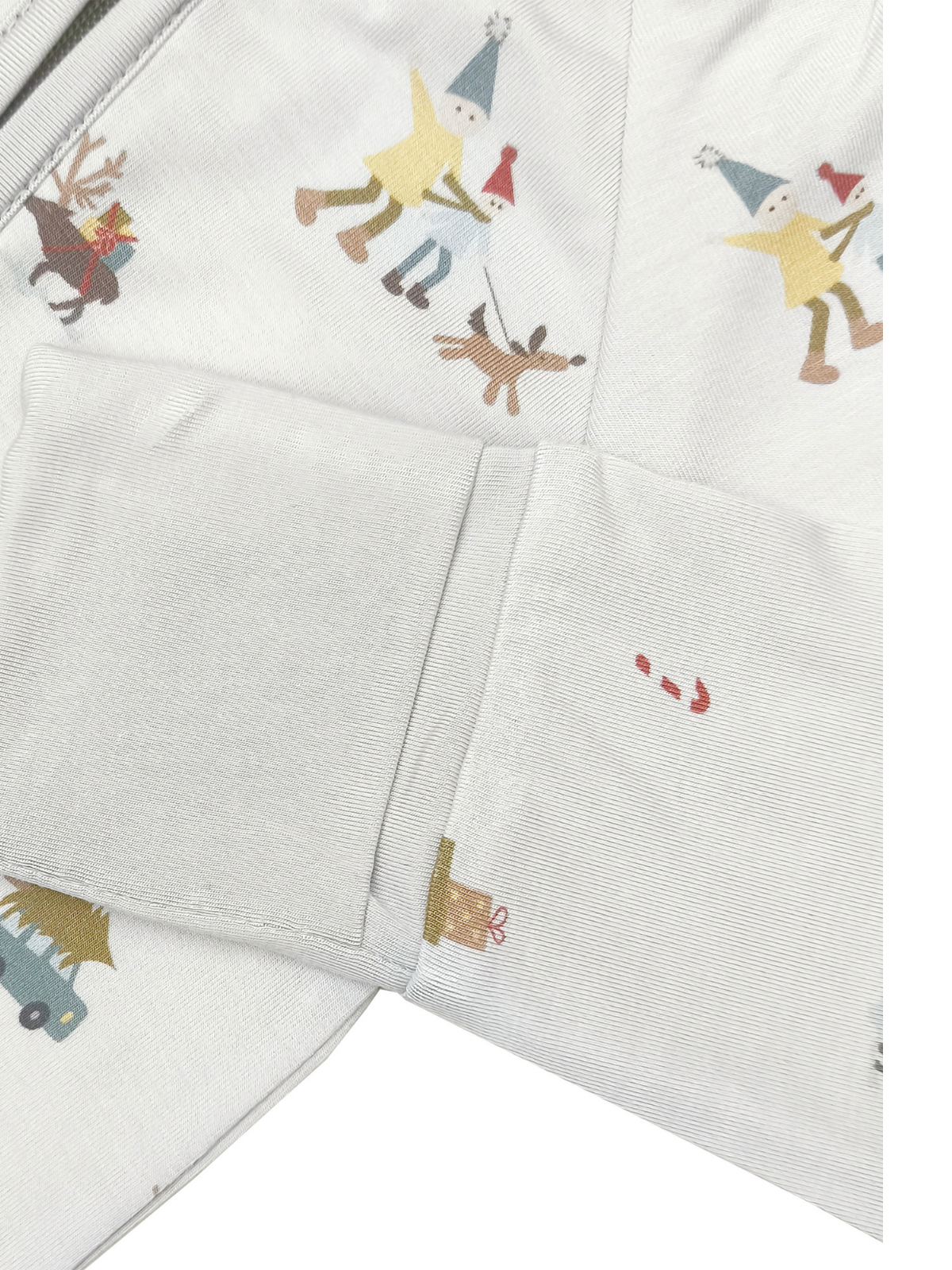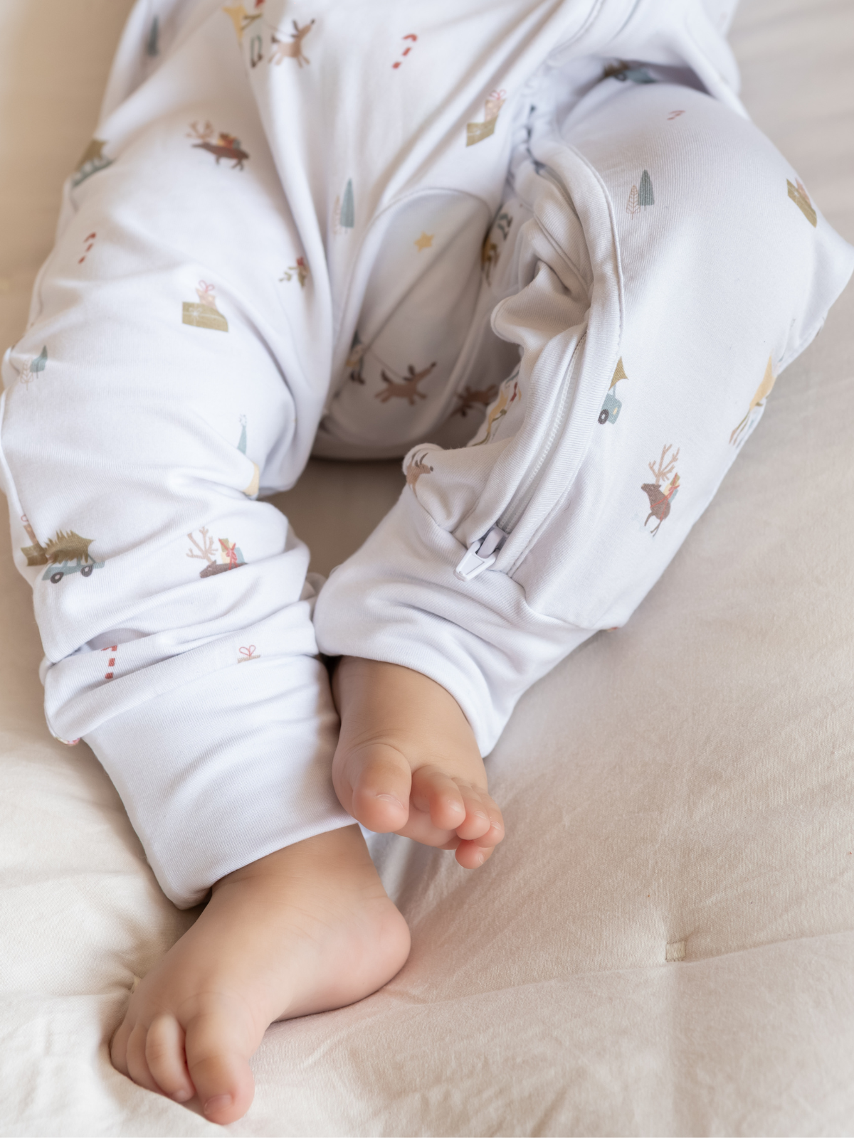 Wrap your little snow-adventurer in cloud-soft bamboo. Winter Village sprinkles whimsical holiday charm—little skaters and walkers, a tree-topped car, reindeer with gifts, stars, holly, and candy canes—in soothing seasonal pastels.