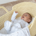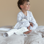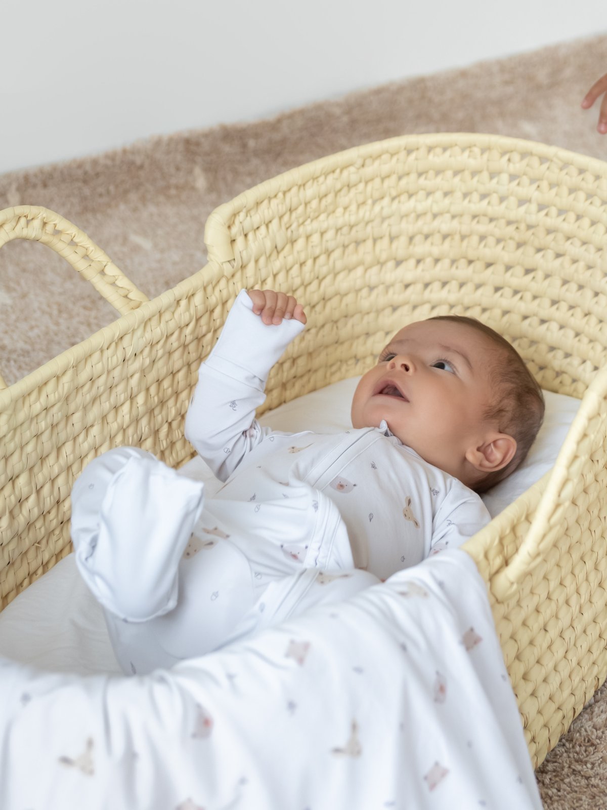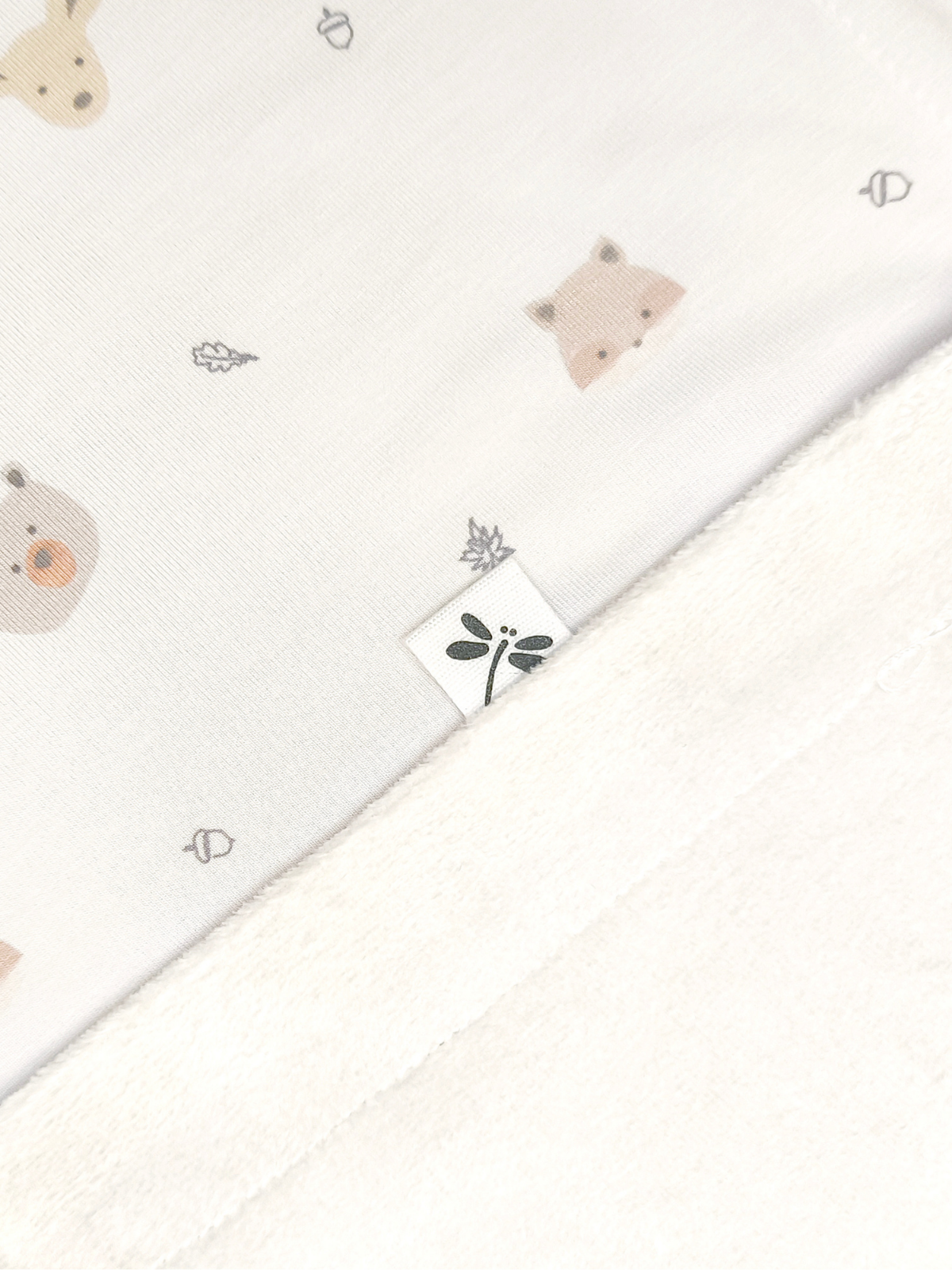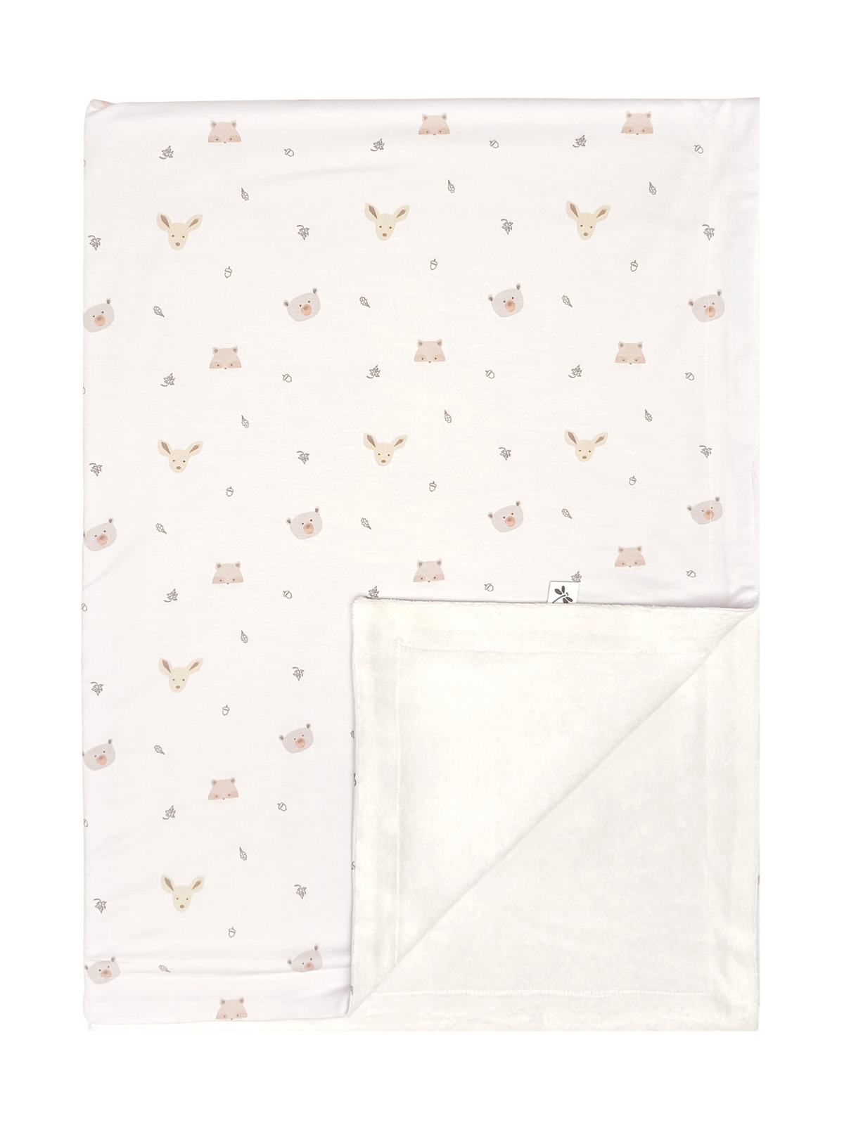 Cuddle time, upgraded. This breathable bamboo blanket features our soothing Forest Friends print—friendly woodland faces, tiny leaves, and acorns in a neutral palette. Gentle on sensitive skin and perfectly matched to the full collection.