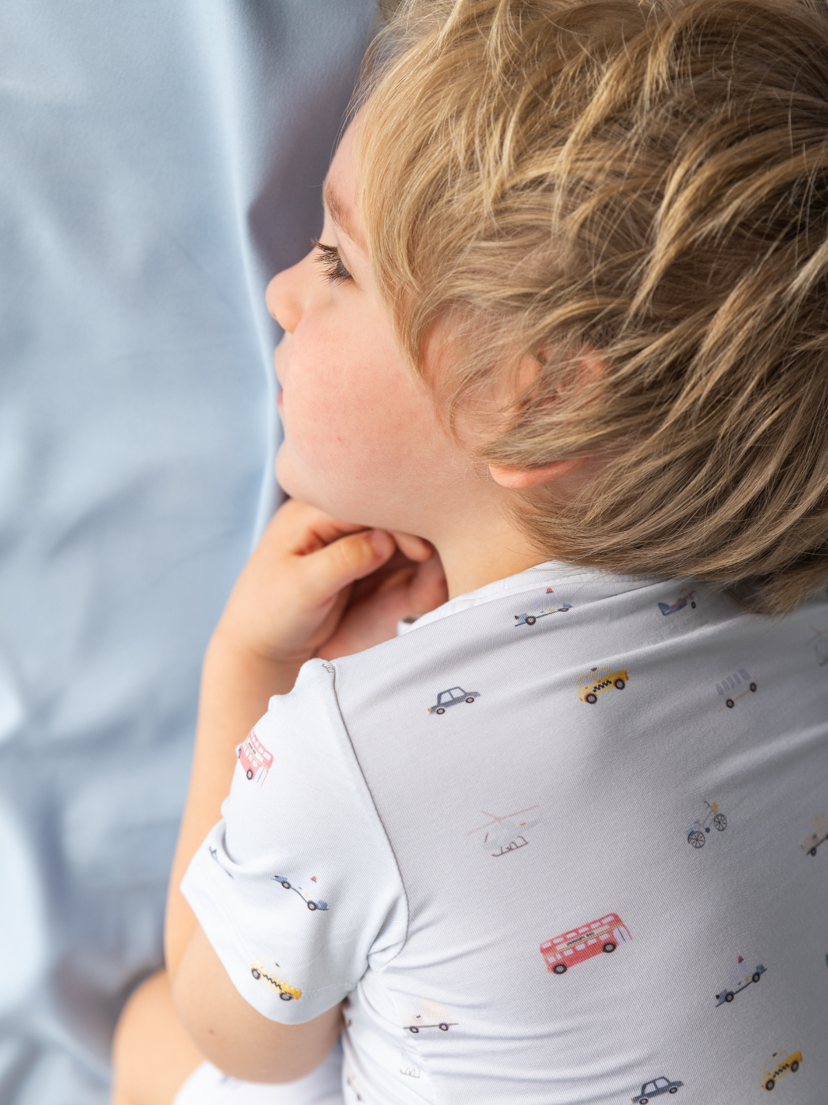 Enjoy a comfortable ride (in style!) with our Short Little Ride Bamboo Two-Piece Set. Made from soft bamboo, this cozy pajama set is perfect for summer nights. With a playful print that kids will love, going for a spin has never been more fun.