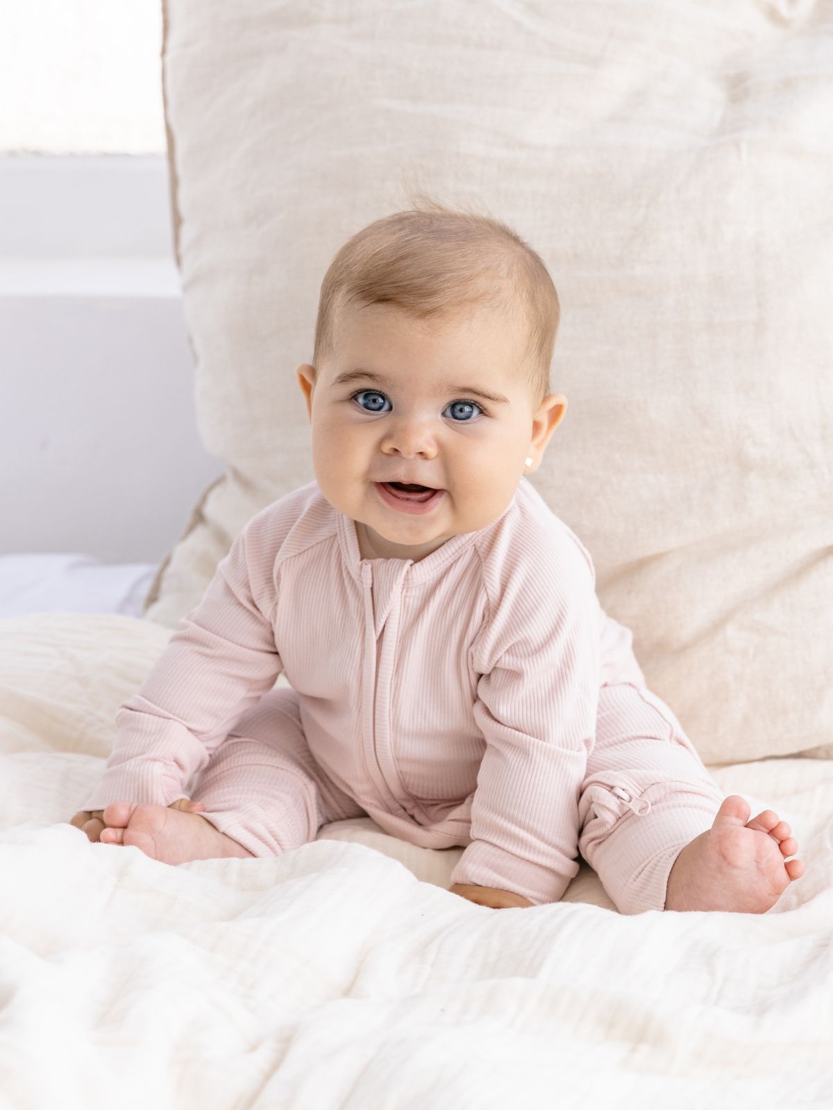 Soft Pink ribbed Bamboo Zippy Romper