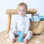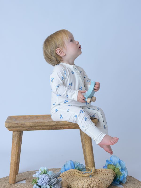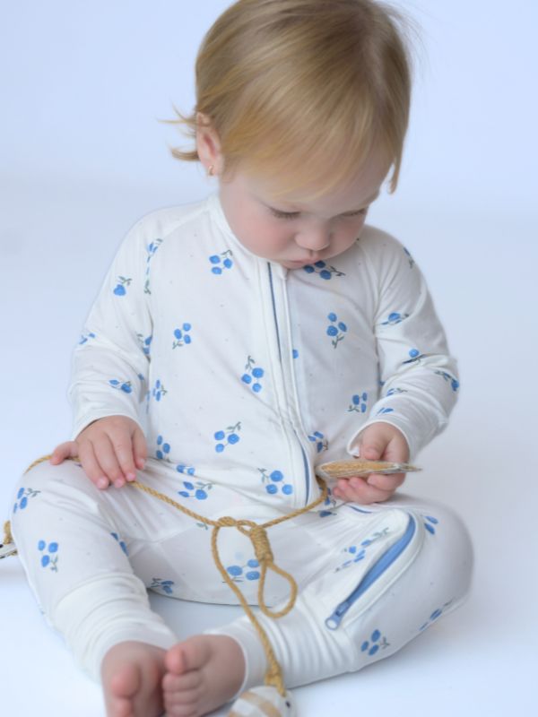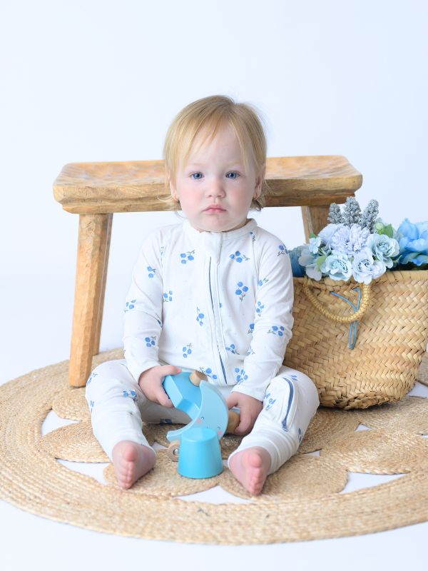 ¡Sorprende a tu pequeño con este pijama con cremallera BLUE BLOOM! Confeccionado con tela de bambú de alta calidad, mantendrá a los bebés cómodos mientras exploran el mundo.