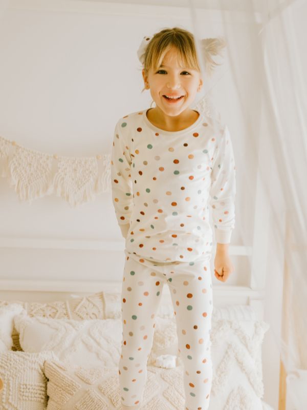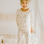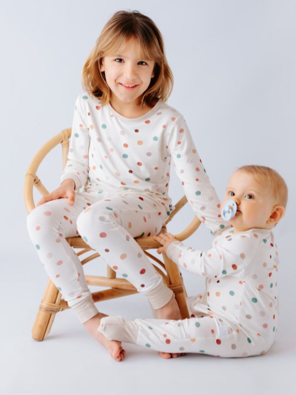 Prepárate para combinar el estilo de tus pequeños con nuestro juego de dos piezas Confetti Bamboo! Estos pijamas están diseñados para complementar perfectamente nuestros populares mamelucos con cremallera de bambú, y cuentan con un patrón alegre y divertido que a tus hijos les encantará.