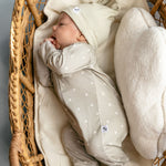 Prepárate para vivir aventuras salvajes y acogedoras con nuestro pelele de bambú con estampado de huellas de león. Fabricado en bambú supersuave, este pelele tiene un divertido estampado de la huella de un león y una cremallera doble para facilitar el cambio de pañal. Con pies plegables y opciones para combinar, tu bebé estará guapo y cómodo. ¡Ruge!