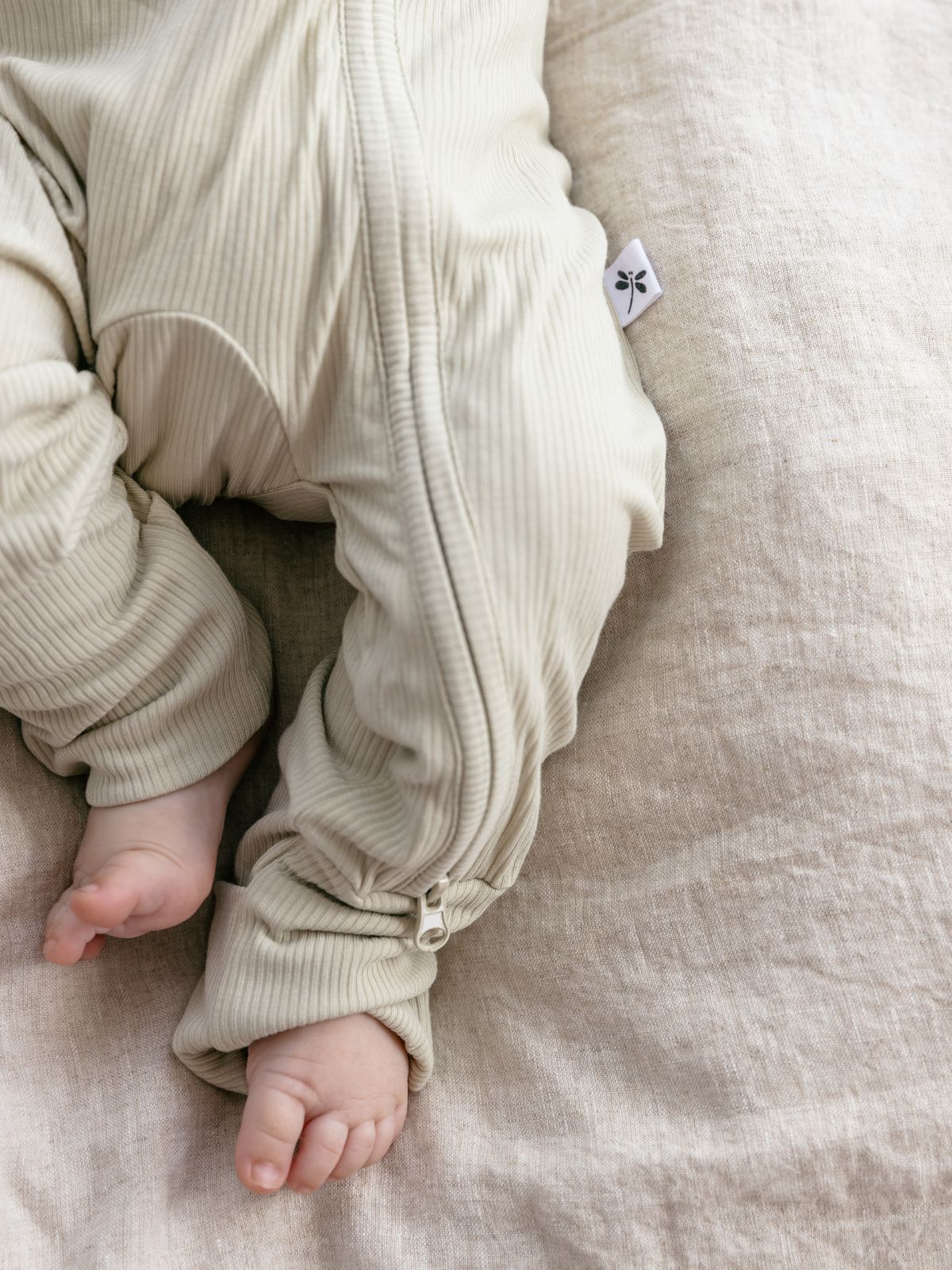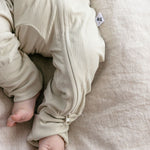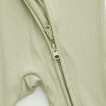 Un neutro y suave color verde oliva acanalado marca el tono de este divertido y cómodo pelele para bebé de Bamboo. Con cremallera bidireccional y pies plegables, esta versátil prenda es perfecta para combinar.