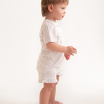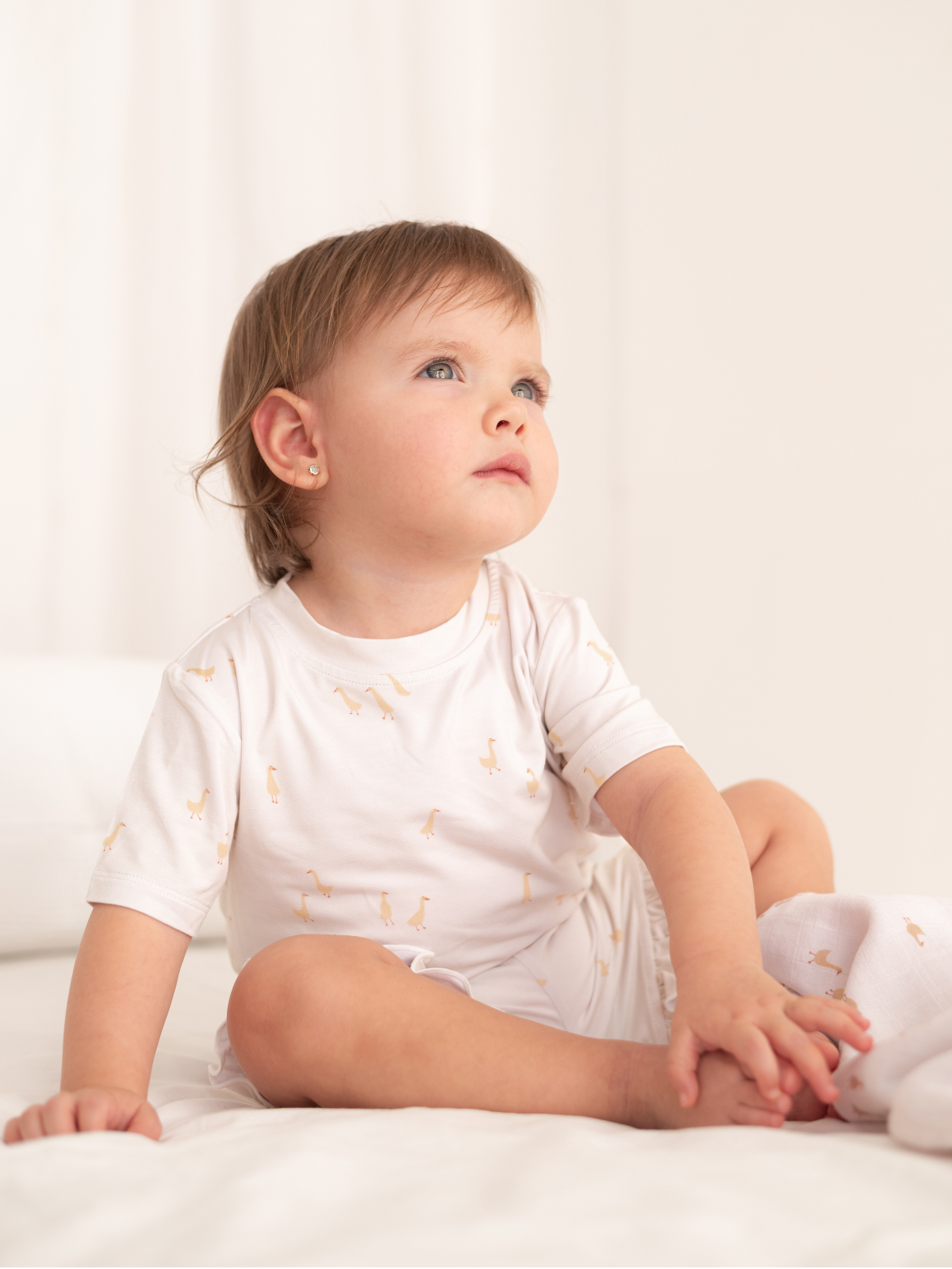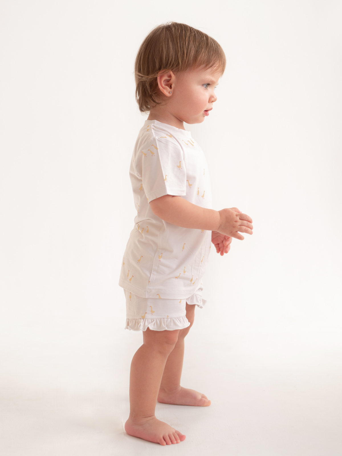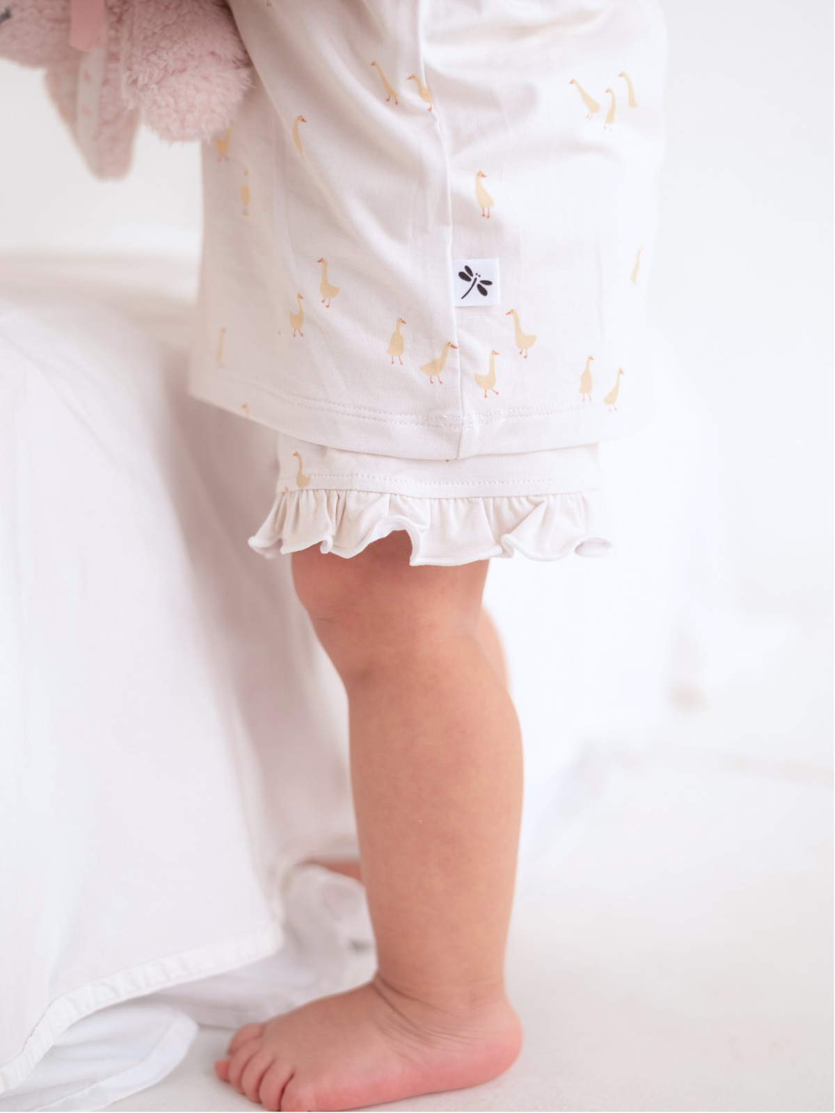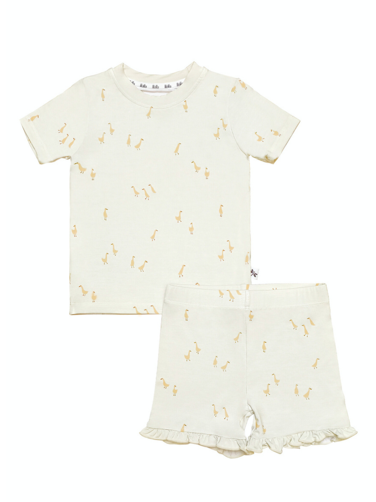 Dulce, delicado y atemporal, este pijama corto de bambú para niñas presenta un encantador estampado de gansitos con un conjunto de camiseta suave y short con un sutil toque femenino. Confeccionado en bambú premium, es transpirable, ultrasuave y perfecto para noches cálidas.