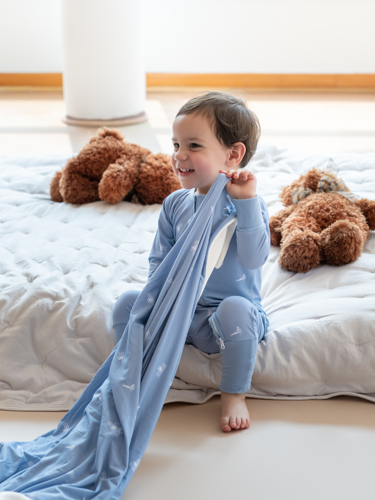 Enveloppez votre petit copilote dans une douceur aérienne. La viscose de bambou respecte les peaux sensibles, régule la température toute l’année et arbore un imprimé avions qui se coordonne avec toute la Collection Planes. Parfaite pour les siestes, la poussette, le siège auto et chaque moment câlin.